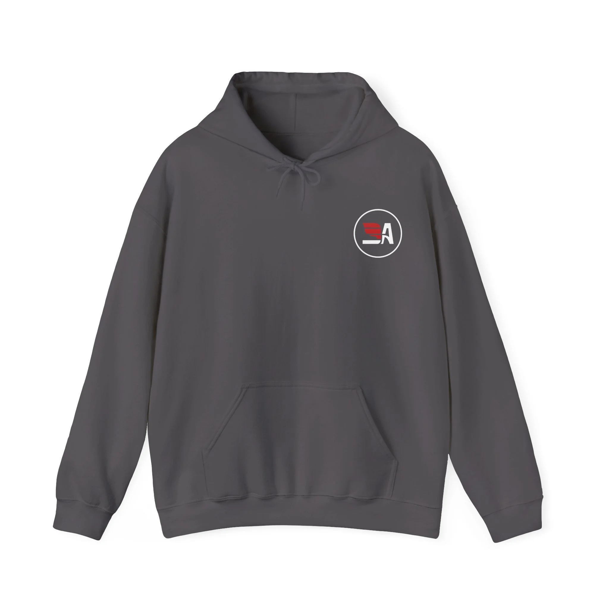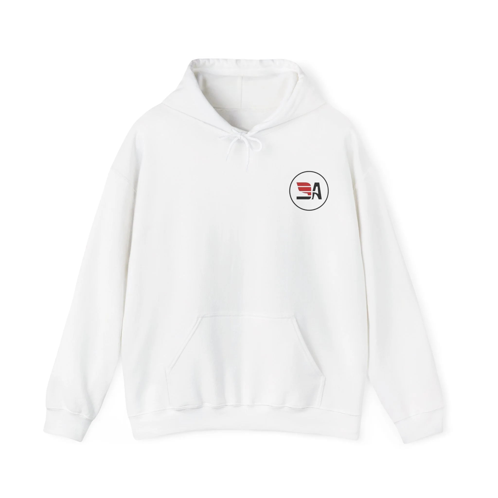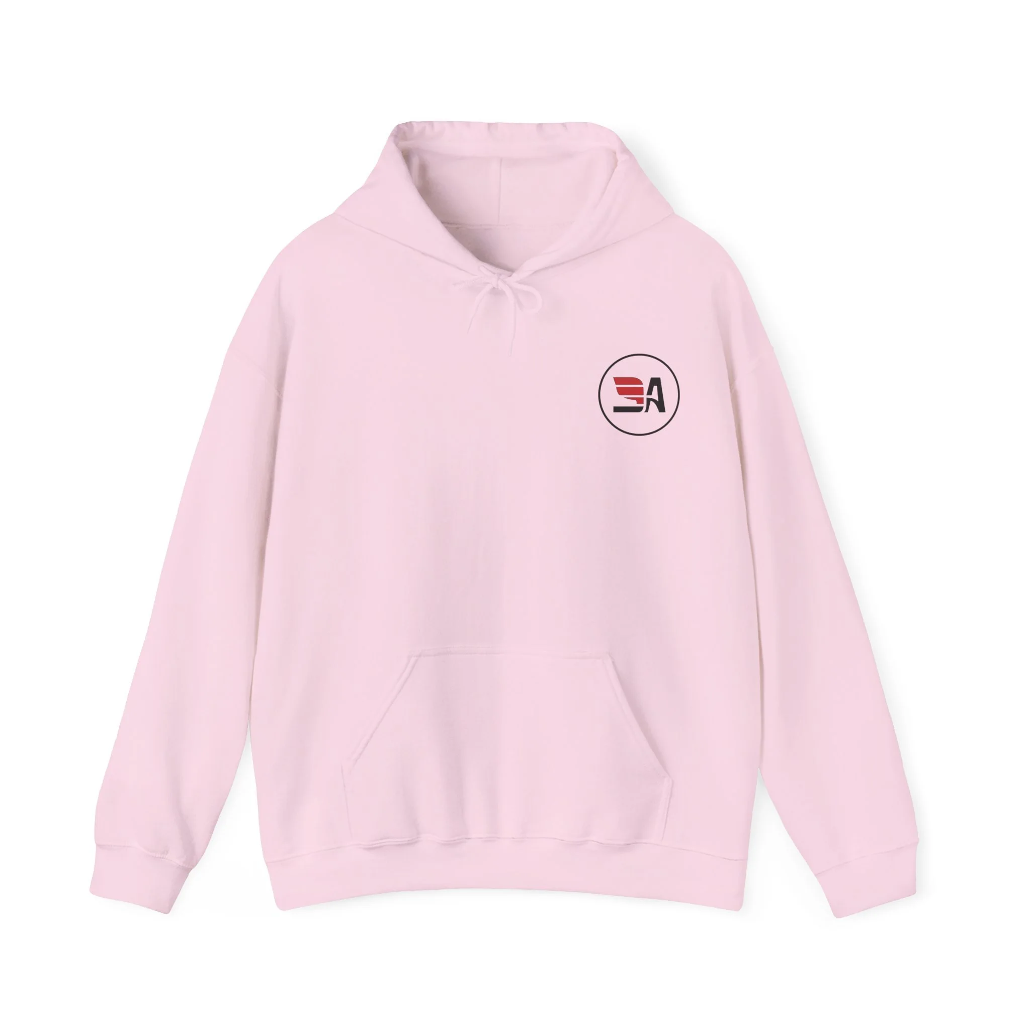 This unisex heavy blend hooded sweatshirt is relaxation itself. Made with a thick blend of cotton and polyester, it feels plush, soft and warm, a perfect choice for any cold day. In the front, the spacious kangaroo pocket adds daily practicality while the hood's drawstring is the same color as the base sweater for extra style points.
